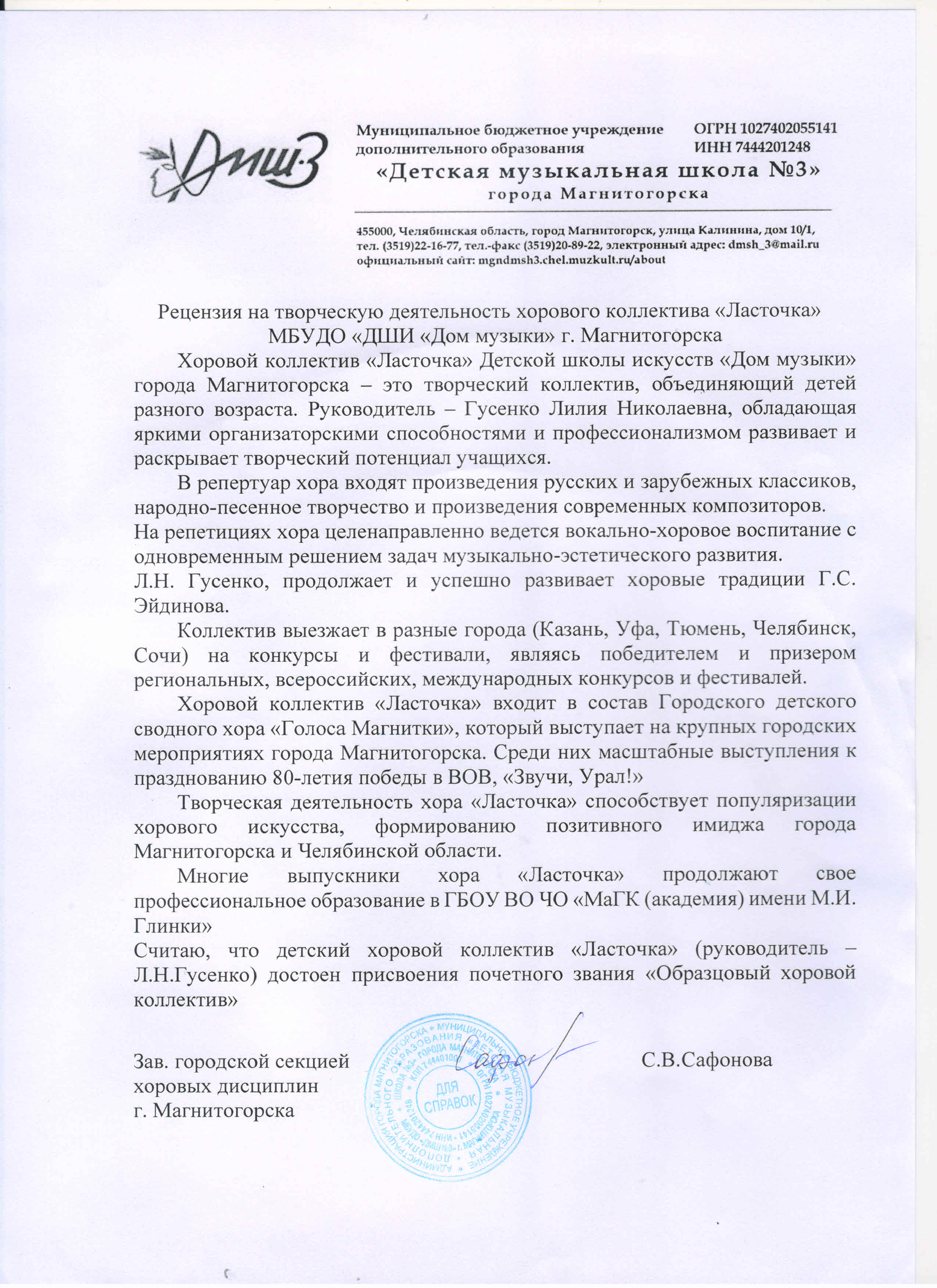 Отзыв Труфановой Н.В. руководитель МО ДШИ "Дом музыки"